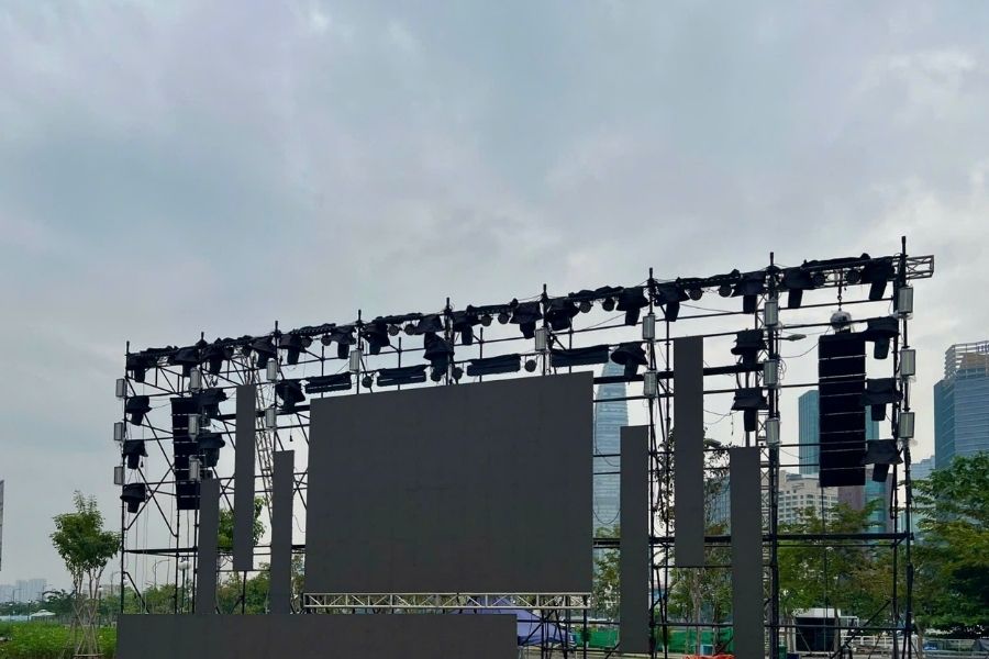- Sân khấu ngoài trời quy mô lớn: Không gian mở chịu tác động trực tiếp của gió và thời tiết khiến kết cấu cần độ ổn định cao hơn. Layer truss giúp tăng độ cứng tổng thể và hạn chế rung lắc.