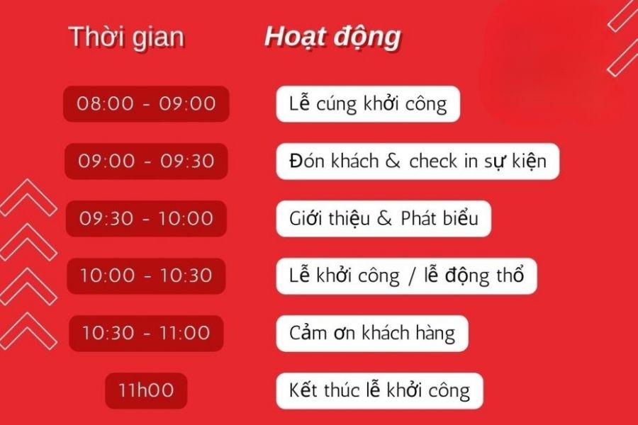 Chi tiết kịch bản chương trình lễ khởi công (Timeline 90 - 120 phút)