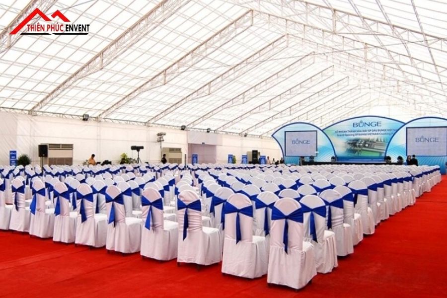 - Sự kiện doanh nghiệp: Thường được sử dụng cho lễ khai trương, khánh thành, hội chợ hoặc triển lãm, nơi cần không gian rộng và hình ảnh chuyên nghiệp.
