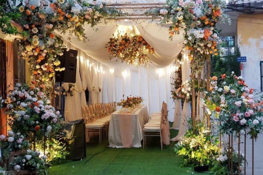 • Tối ưu không gian tổ chức: Mỗi địa điểm tổ chức, đặc biệt là tại nhà riêng, đều có những giới hạn về diện tích, lối đi và mặt bằng. Dịch vụ chuyên nghiệp giúp khảo sát và bố trí nhà bạt, sân khấu, bàn tiệc một cách khoa học, đảm bảo sự thông thoáng, an toàn và thuận tiện cho gia đình cũng như khách mời.